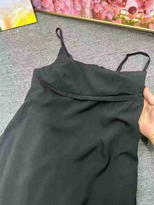 黑色吊带裙子质感高级感气质连衣裙女夏天女神范黑色小礼裙,单款单色,肩带可调节,4码裙长120厘米,独立包装,1到5码,货品干净,700件左右,7.9清,分货加1。 货号:24862