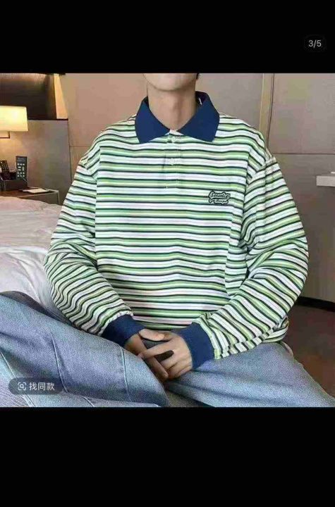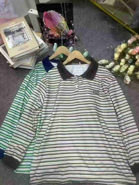 男装春秋季新款减龄POLO领条纹纽扣卫衣宽松休闲上衣,重工刺绣,单款2色,后包领,独立包装,货品干净,M-2XL码,360件,7.9清。 货号:24862