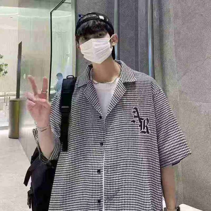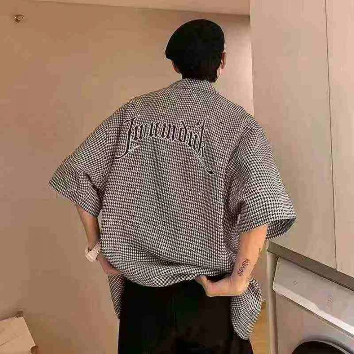 格子短袖衬衫男夏季薄款港风外套设计感小众上衣ins潮流痞帅衬衣,单款单色,m-xl,独立包装,货品干净,280件左右,7.8清,分货加1。 货号:24862