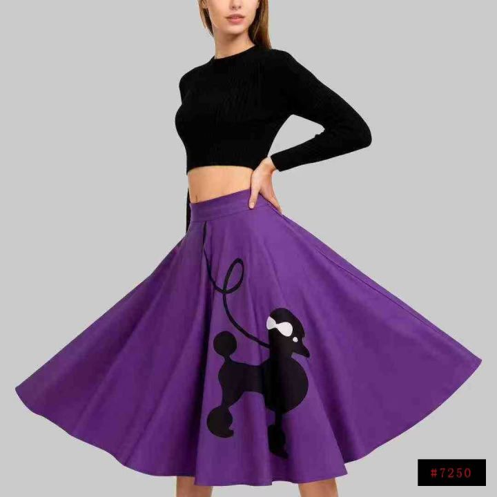跨境女装亚马逊爆款欧美外贸印花夏季贵宾犬A字裙子复古女半身裙 ,整款五色...