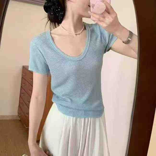 夏季新款净版简约冰丝曲珠针织短袖T桖,独立包装,均码面料柔软舒适丝滑有...