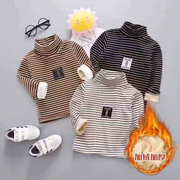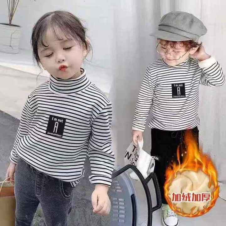 码数120-160,独立包装,高弹力内里抓绒保暖打底衫,儿童内搭打底衫秋冬加绒保暖上衣中高领条纹长袖外穿T恤