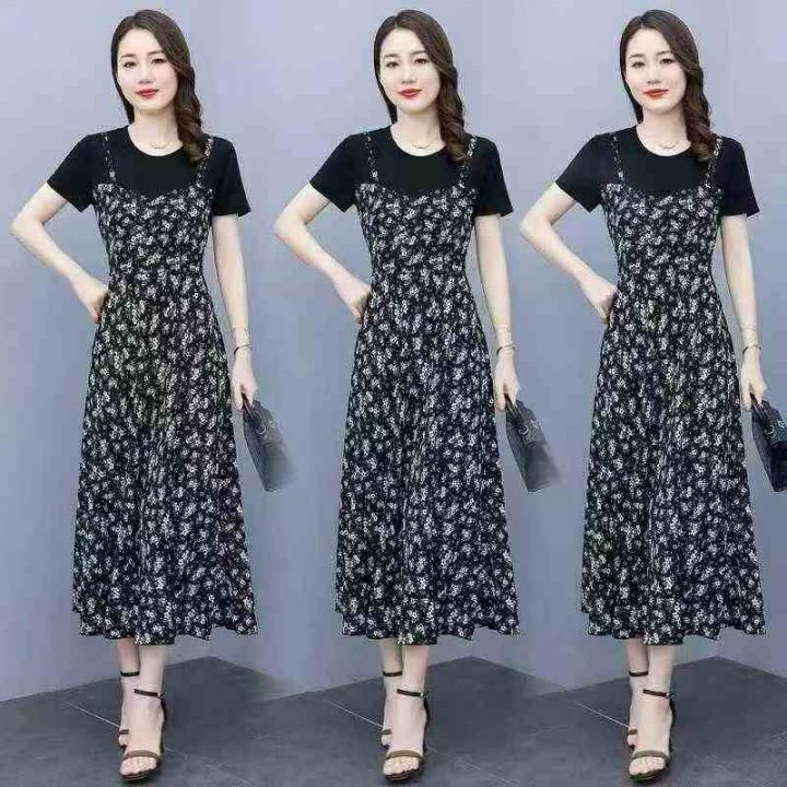 碎花连衣裙女夏季2025新款薄款遮肚显瘦垂坠感假两件裙子,M码110厘米,独立包装,货品干净,M.L.XL.3XL,340件左右,8.8清,分货加1