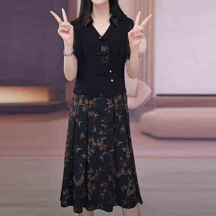 高档复古妈妈假两件连衣裙大码女装遮肉遮胯显瘦裙子,...