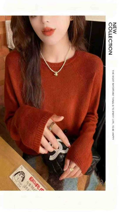 秋冬新款净版简约百搭多巴胺圆领包芯纱套头毛衣,独立...