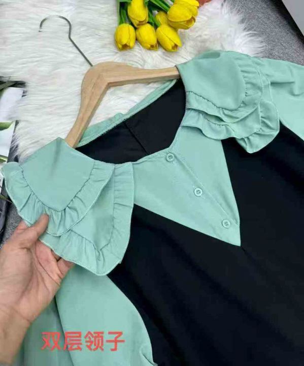 全清价8.9假两件娃娃领女减龄休闲宽松显瘦小个子学院...