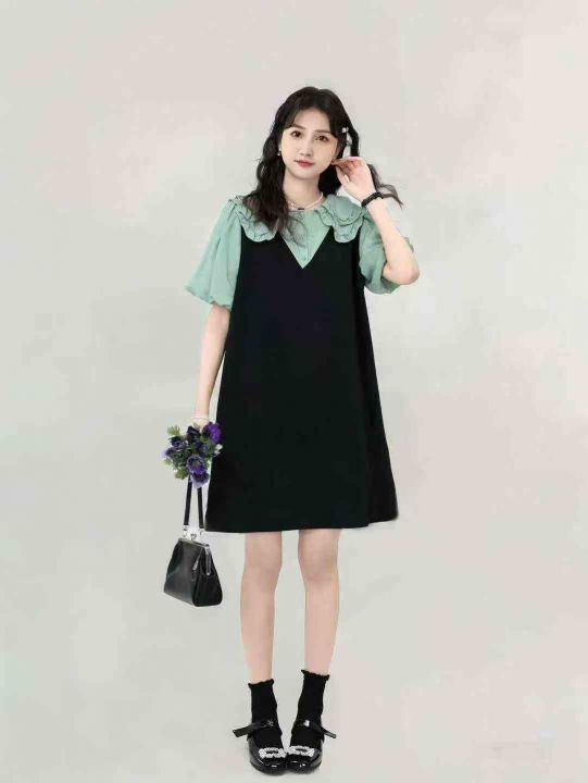 假两件娃娃领女减龄休闲宽松显瘦小个子学院风连衣裙,独立包装,整款单色,码数2-6码,数量103条,3码裙长85厘米,货号1213#21