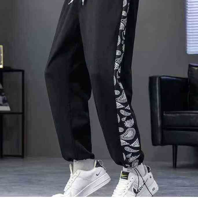 男士潮流拼色百搭阔腿休闲裤,脚口抽绳设计,可束脚可...