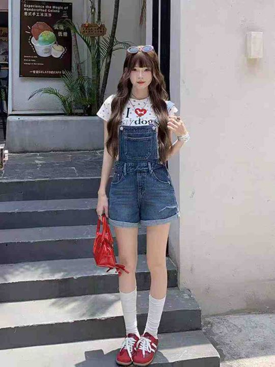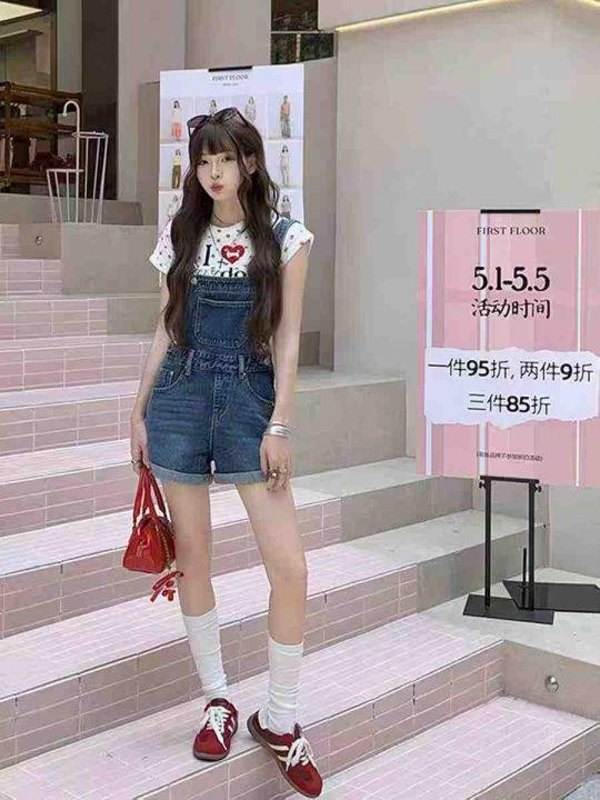 夏季新款复古设计款牛仔背带短裤,短裙,独立包装带吊...