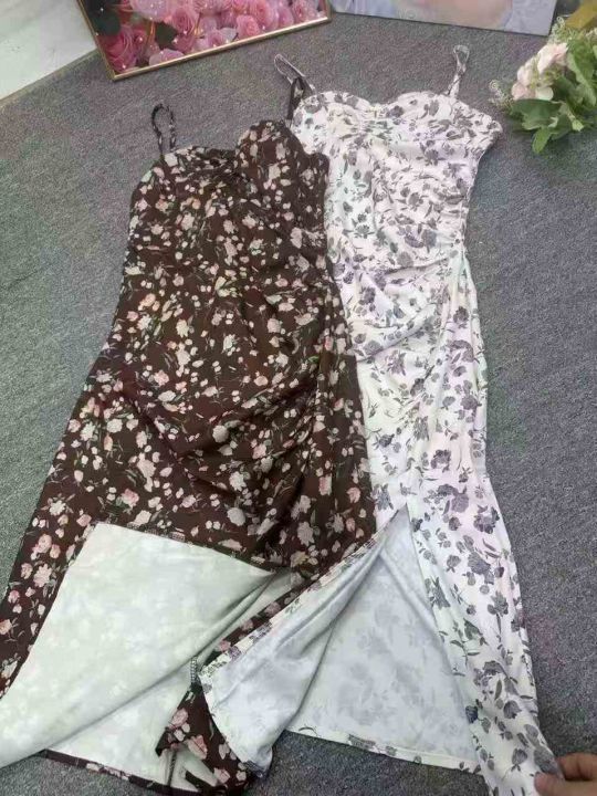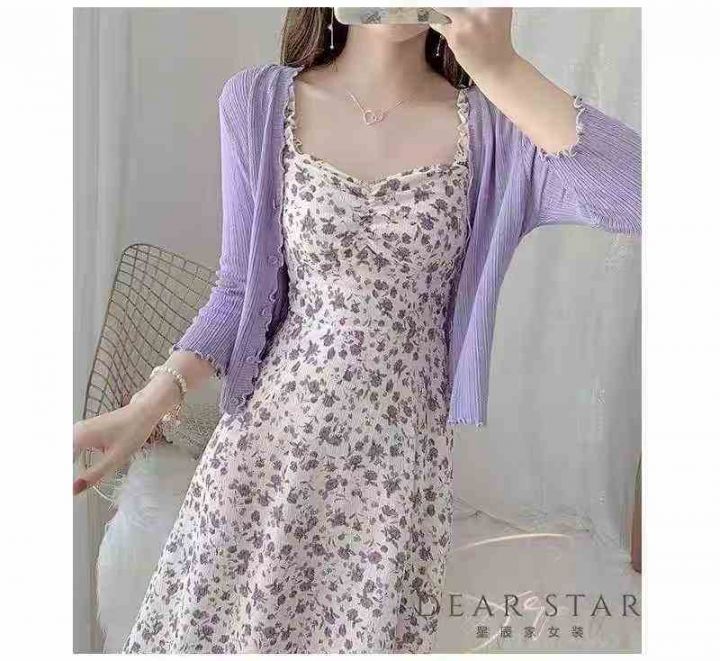 温柔风紫色碎花连衣裙女收腰显瘦小个子吊带裙,模特供参考,整款2色,1到4码,2码裙长105,独立包装,货品干净,570左右,7.8清,分货加1