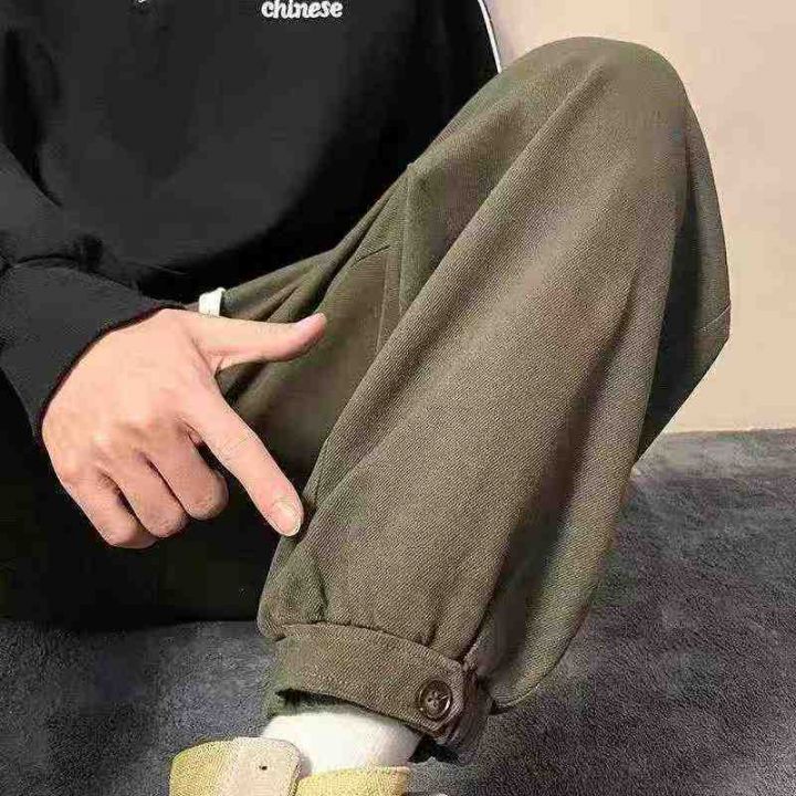 低价处理4.8日系复古棉工装裤男士纯色潮牌宽松抽绳束...