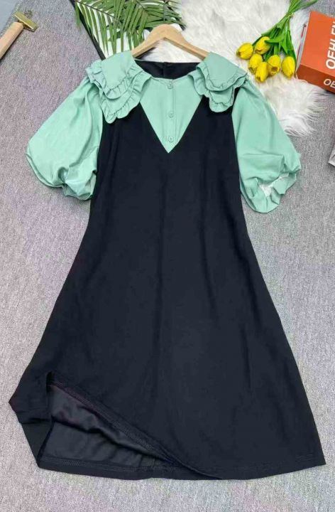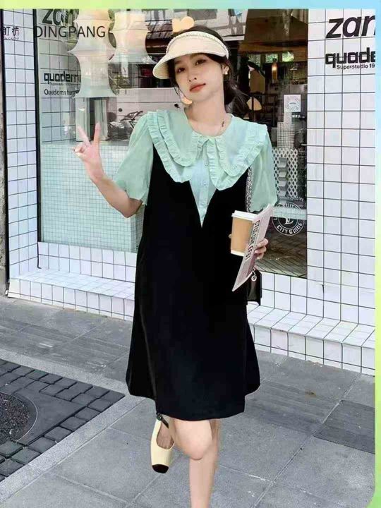 假两件娃娃领女减龄休闲宽松显瘦小个子学院风连衣裙,独立包装,整款单色,码数2-6码,数量103条,3码裙长85厘米,货号1213#21