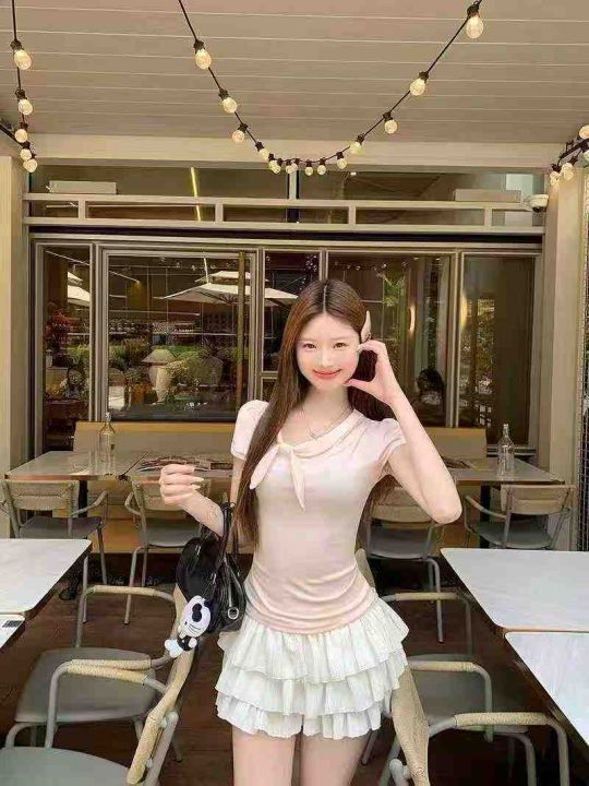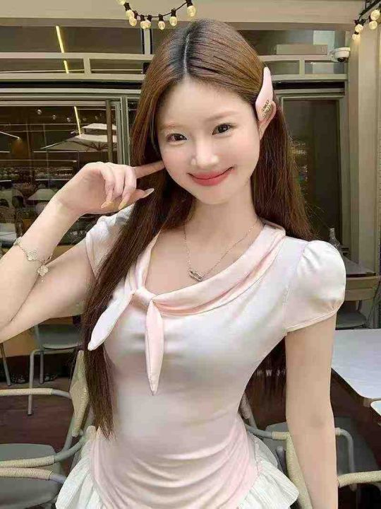 韩系甜美撞色水手领绑带收腰显瘦上衣,[爱心]165件左右,粉色为主,款号#1632,码数S-L,穿70-110斤,万佳档口货,原包装️无瑕疵,[666]实体店品质