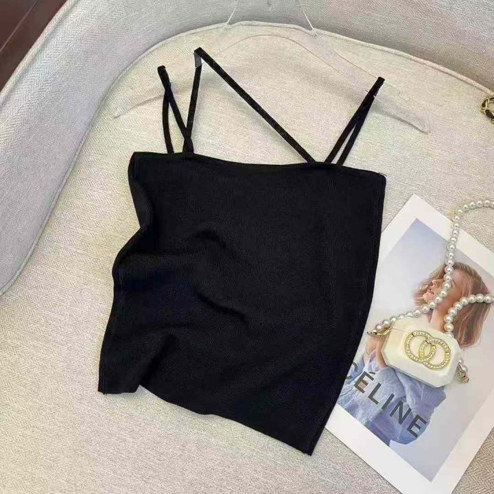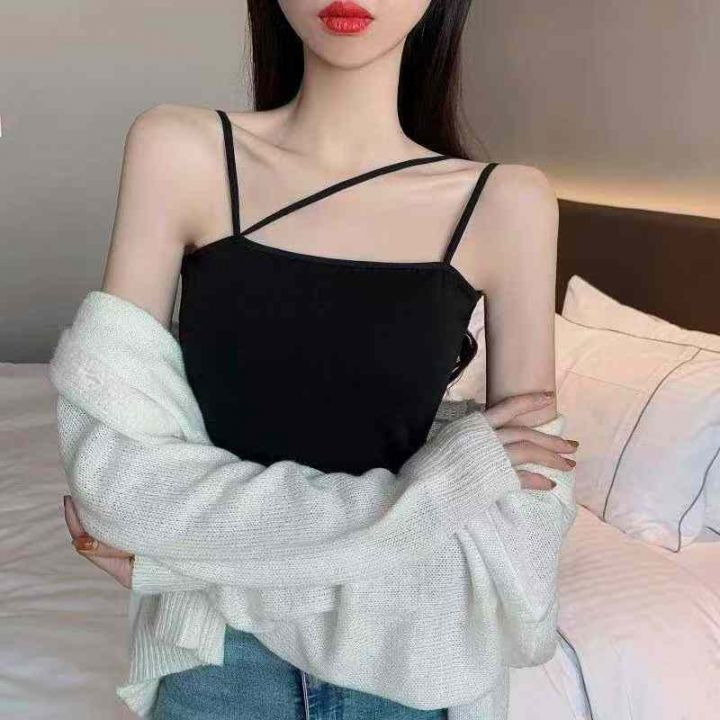 夏季新款性感纯欲风设计款内搭外穿斜肩带挂脖针织吊带...