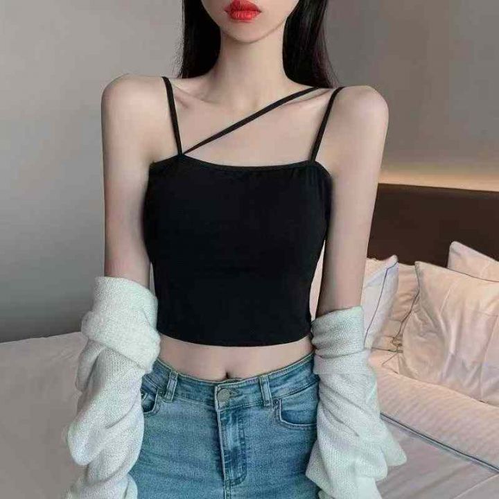 夏季新款性感纯欲风设计款内搭外穿斜肩带挂脖针织吊带背心,独立包装,均码面料柔软舒适弹力大,169件,全清4.9元超低价秒杀!