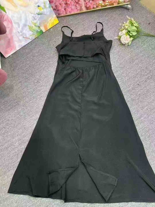 黑色吊带裙子质感高级感气质连衣裙女夏天女神范黑色小礼裙,单款单色,肩带可调节,4码裙长120厘米,独立包装,1到5码,货品干净,700件左右,7.9清,分货加1
