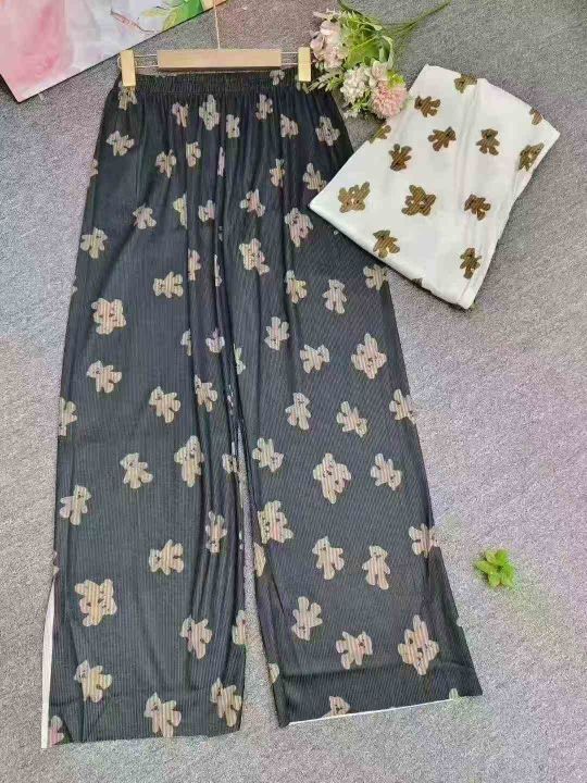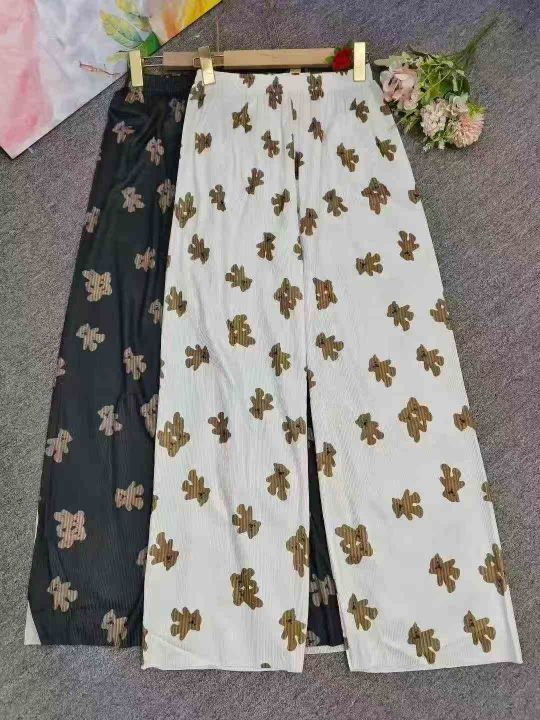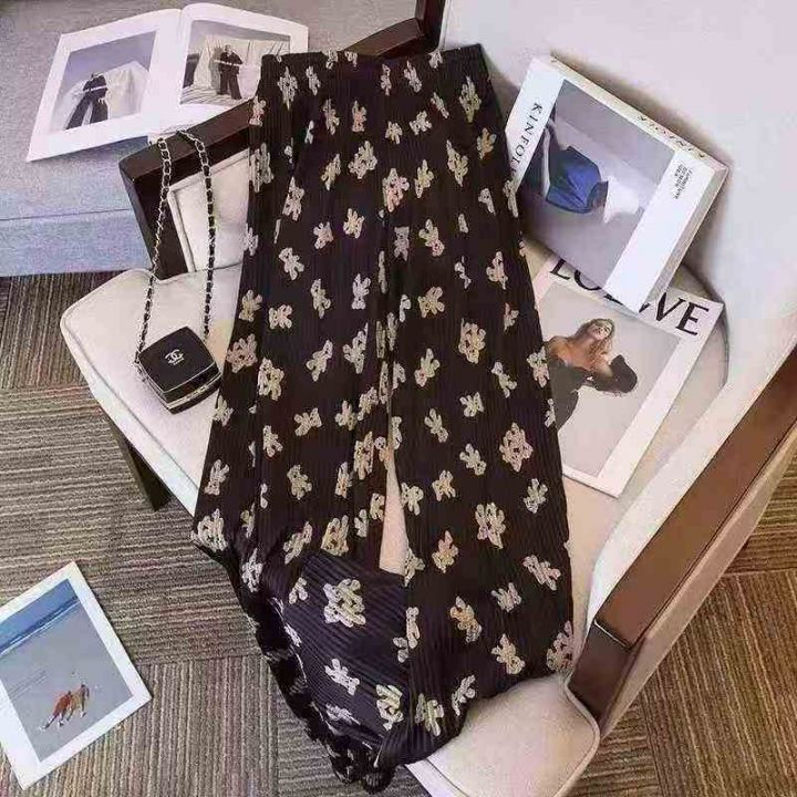 小熊印花风格百褶裤女宽松百搭垂感阔腿裤高腰直筒裤休闲裤,独立包装,整款2色,1-5码,130件左右,4.9元秒杀价!!!