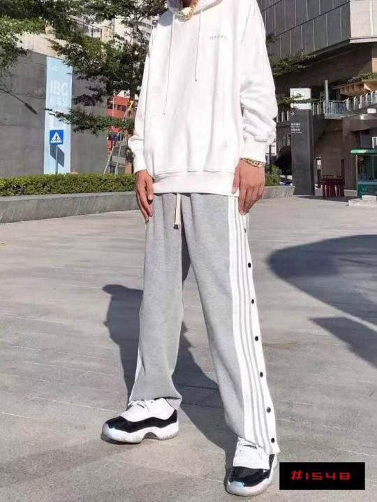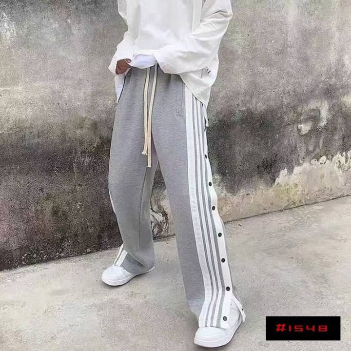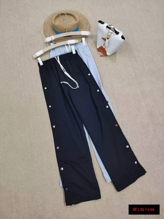 [月亮]:情侣同款排扣设计抽绳棉质休闲裤