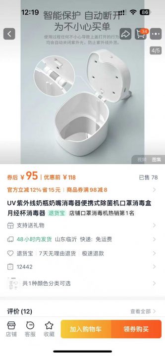 UV紫外线奶瓶奶嘴消毒器便携式除菌机,430pcs