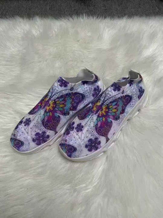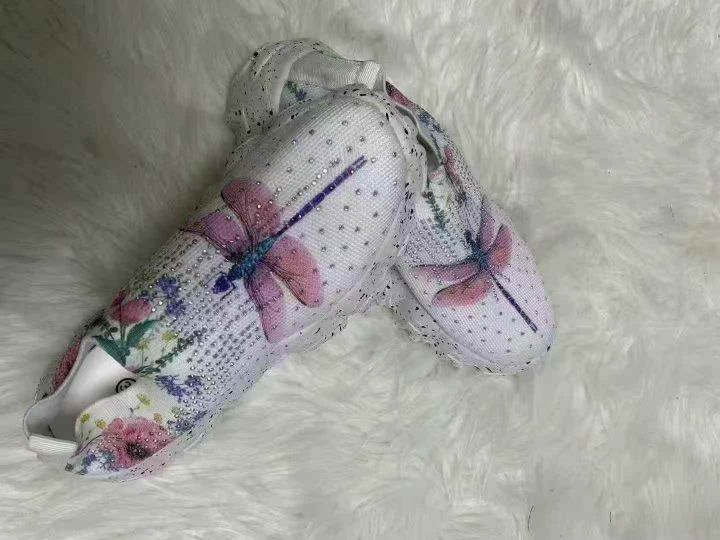 外贸大码男女鞋春季透气运动休闲鞋水钻彩虹闪亮飞织鞋...