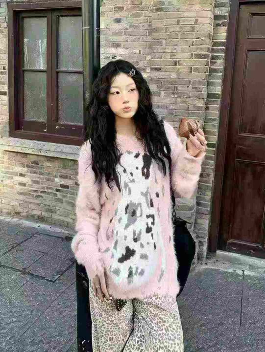 水貂毛软糯提花套头毛衣慵懒高级感秋冬减龄穿搭针织衫上衣,独立包装,均码...