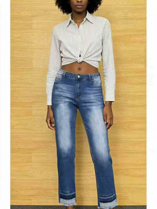 #Wholesale of mixed-style women’s jeans外单女士直筒宽腿烟管水洗棉牛仔...