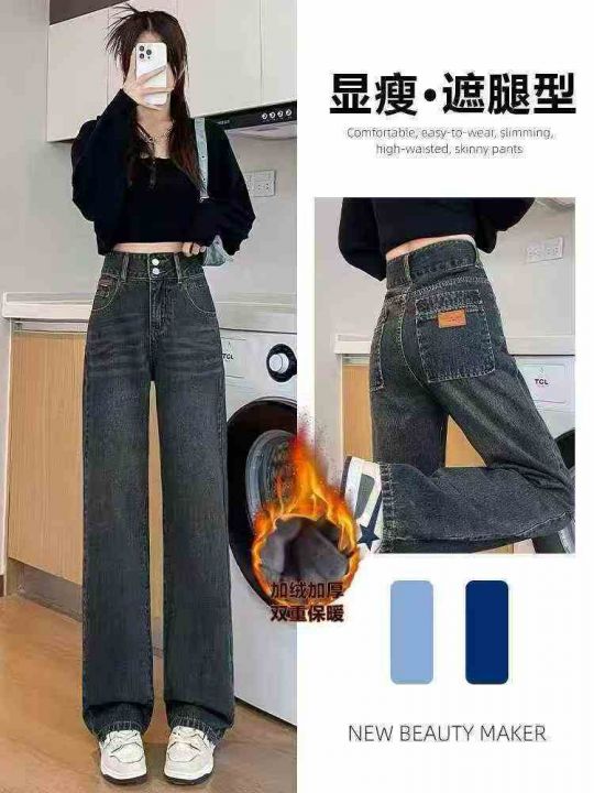 高品质高腰牛仔阔腿裤女直筒裤垂感百搭拖地裤,加绒款...
