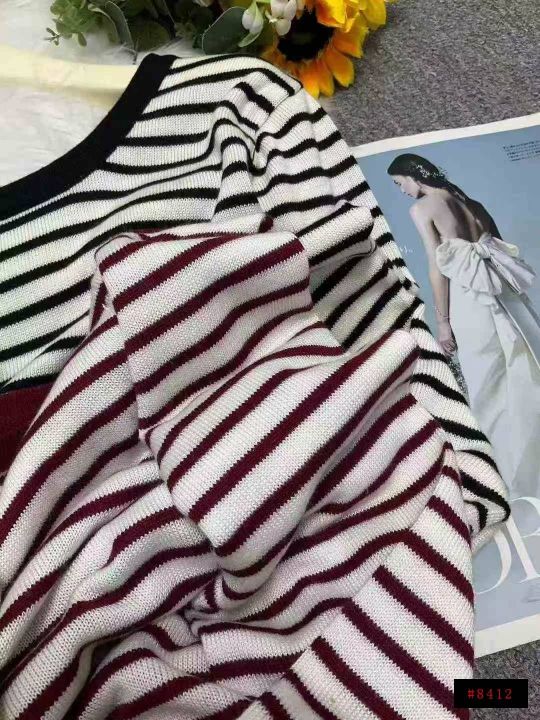 秋冬新款性感辣妹设计款撞色条纹长袖显瘦包芯纱针织套头毛衣,独立包装,单款多色,均码面料软糯舒适弹力大,393件,全清7.9元超低价秒杀!分货加一!@_@