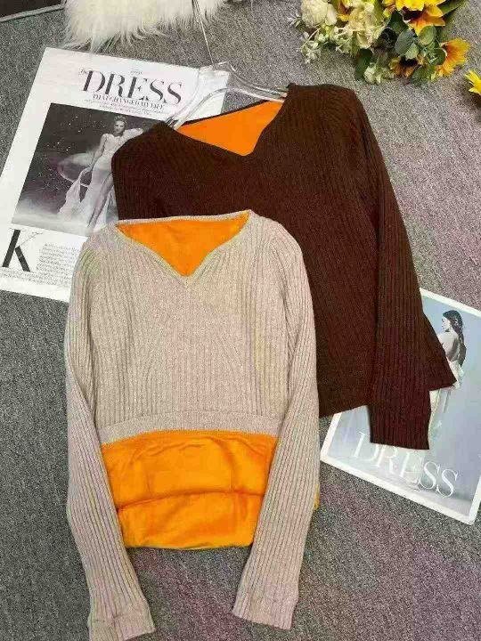 冬季新款加绒加厚美拉德色系V领坑条包芯纱套头毛衣,独立包装,均码面料软糯厚实弹力大,300件左右,全清6.9元超低价秒杀!分货加一!