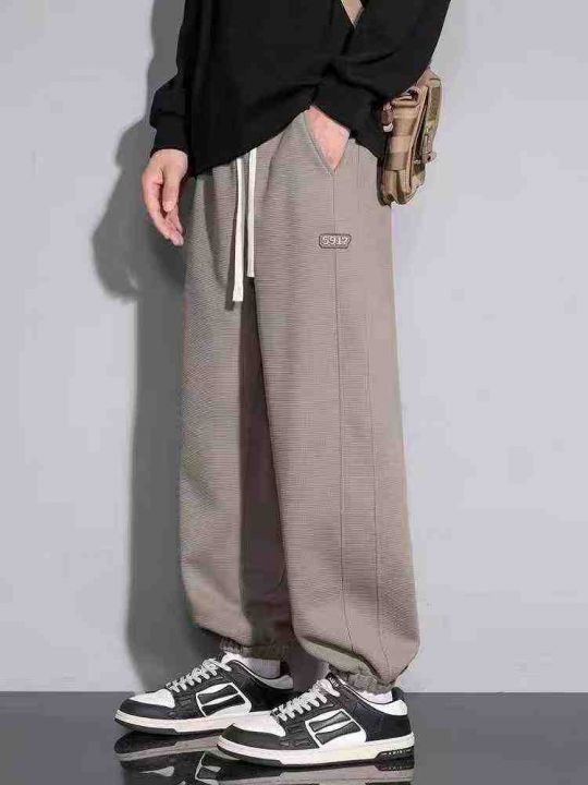 ☕️美式纯色束脚卫裤男春秋季休闲裤裤华夫格不加绒卫裤330条全清9.8元,码...