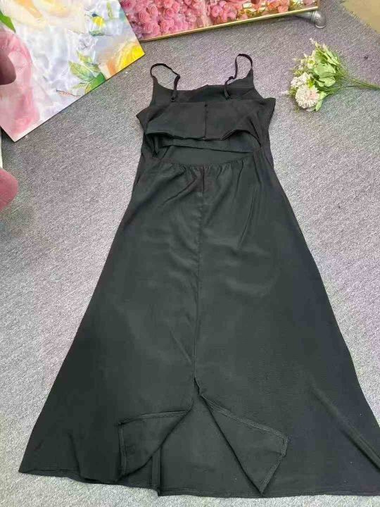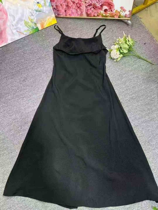 黑色吊带裙子质感高级感气质连衣裙女夏天女神范黑色小礼裙,单款单色,肩带可调节,4码裙长120厘米,独立包装,1到5码,货品干净,700件左右,7.9清,分货加1