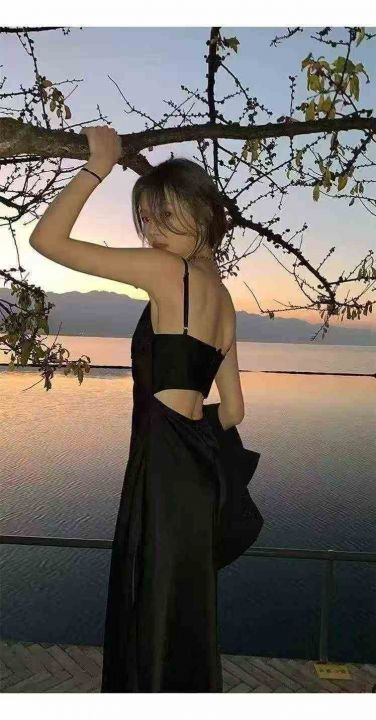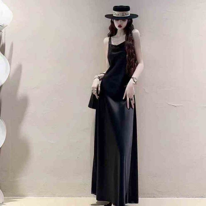 黑色吊带裙子质感高级感气质连衣裙女夏天女神范黑色小...