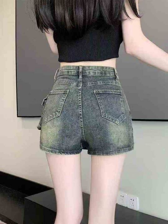 春夏新款辣妹高腰显瘦工装口袋做旧设计复古牛仔裙裤包...