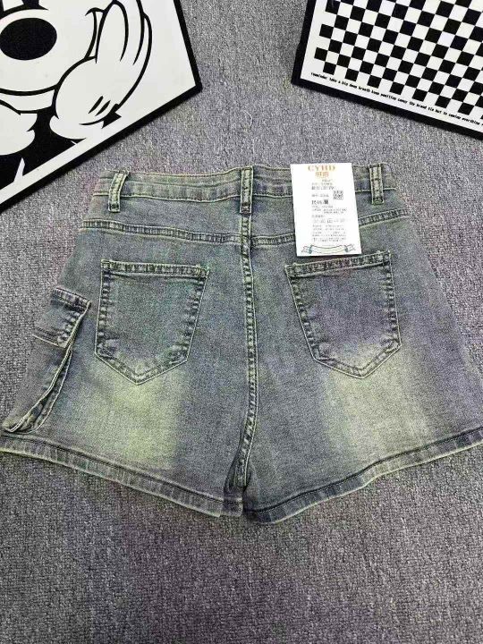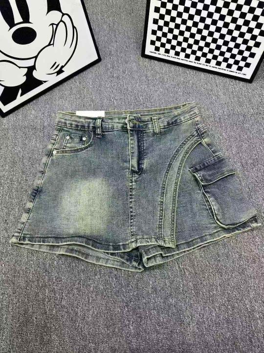 春夏新款辣妹高腰显瘦工装口袋做旧设计复古牛仔裙裤包...