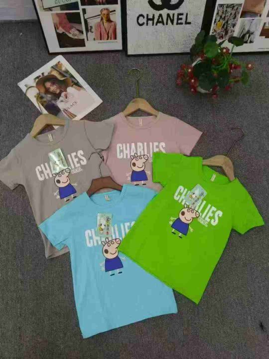 小猪佩奇童装竹节棉T恤 数量370件左右 尺码90--160 整款四个色 独立包装带吊牌 货品干净整洁