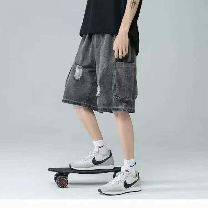 捡漏款,夏季新款松紧腰男士宽松百搭多袋洗水棉牛仔工...