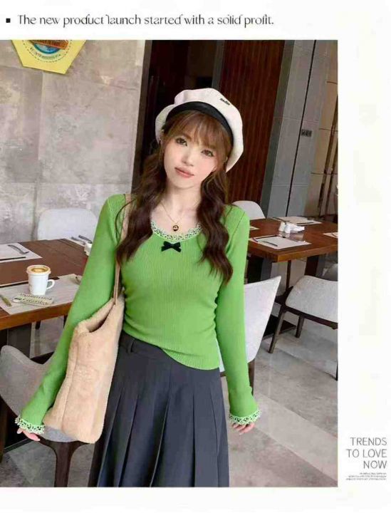 早秋新款韩系穿搭甜心奶糕蕾丝拼接蝴蝶结柔棉提花长袖针织套头毛衣,独立包装,均码面料柔软舒适弹力大,210件,全清6.9元超低价秒杀!