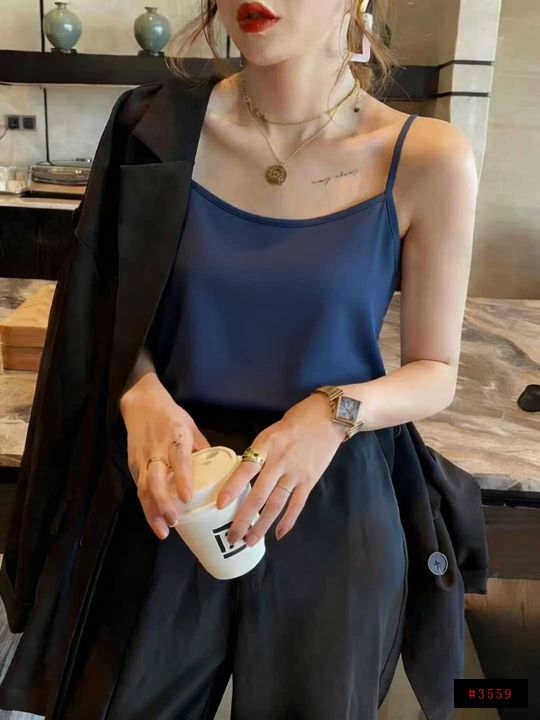夏季新款法式防真丝缎面冰丝西装打底宽松吊带,独立包...