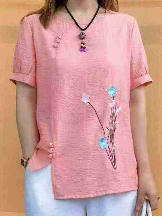 棉麻重工绣花复古短袖衫 ,数量: 86件,码数:2码-6码相当于M-L-XL-2XL,...