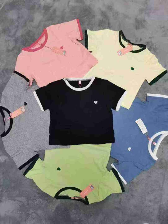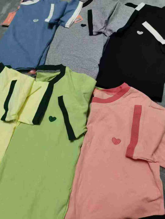 [福]韩版甜辣bm风圆领短袖1040件,小众设计感撞色爱心刺绣,码数1~2码,单款7色,独立包装。