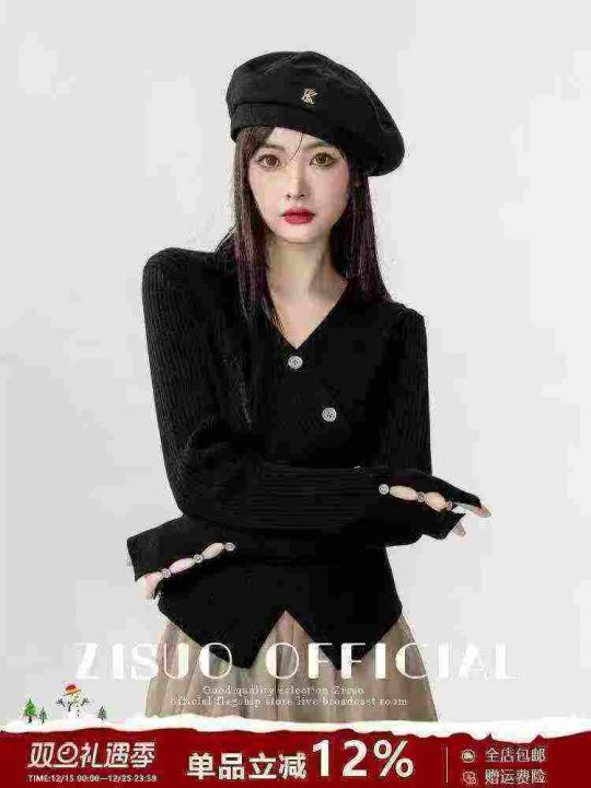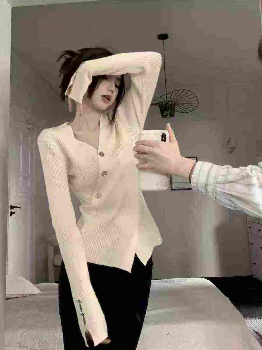 不规则v领针织衫女秋冬设计感小众毛衣开叉修身上衣潮,独立包装,550件,清7.8,分➕1