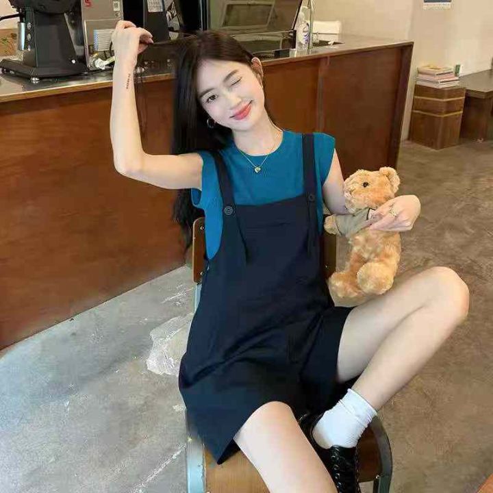 夏季新款学院风冰丝顺滑减龄网红休闲背带西装短裤,独...