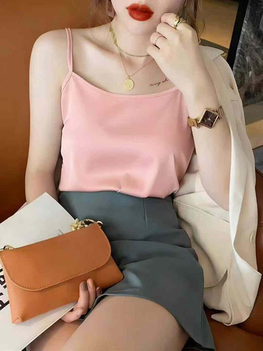 夏季新款法式防真丝缎面冰丝西装打底宽松吊带,独立包...