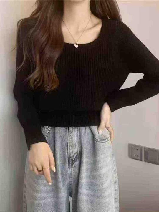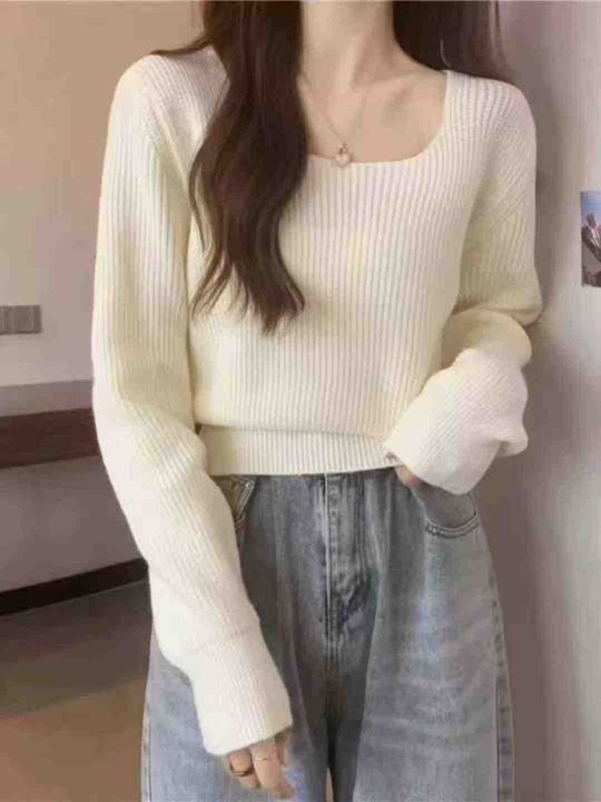 秋季新品方领高腰净版简约基础百搭套头毛衣, 独立包...