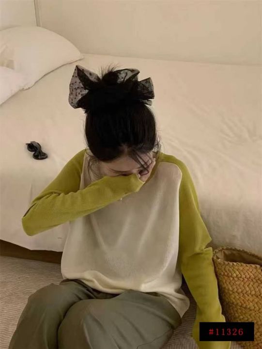 早秋新款复古美式小众破洞设计款宽松撞色百搭针织套头...