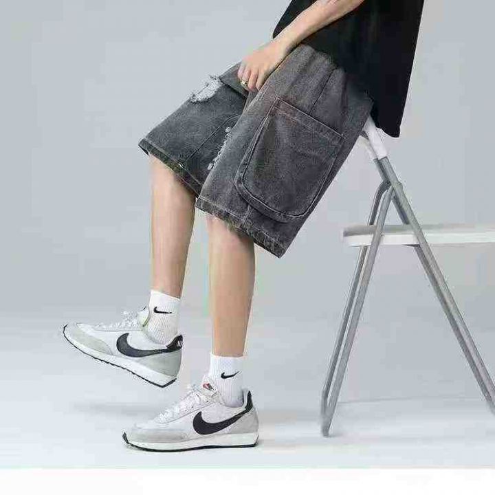 捡漏款,夏季新款松紧腰男士宽松百搭多袋洗水棉牛仔工...