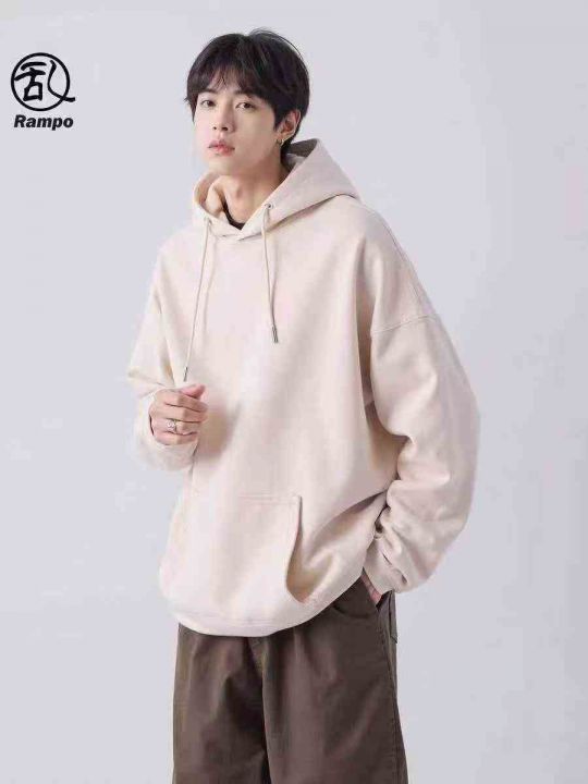 ☕️美式重磅纯色加绒连帽卫衣男女秋冬宽松加绒情侣纯...