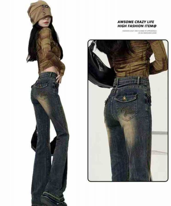 ins辣妹复古微喇叭牛仔裤女春秋爆款美式马蹄拖地裤,...