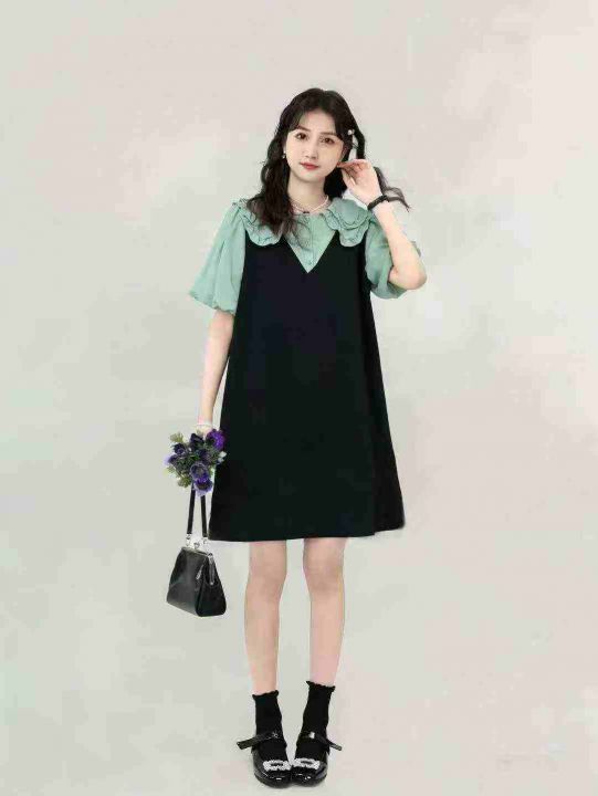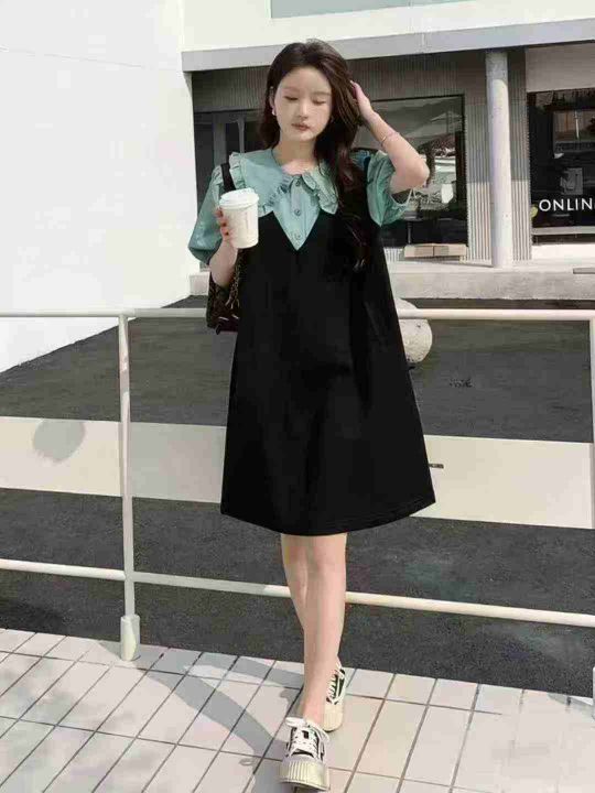 假两件娃娃领女减龄休闲宽松显瘦小个子学院风连衣裙,独立包装,整款单色,码数2-6码,数量103条,3码裙长85厘米,货号1213#21