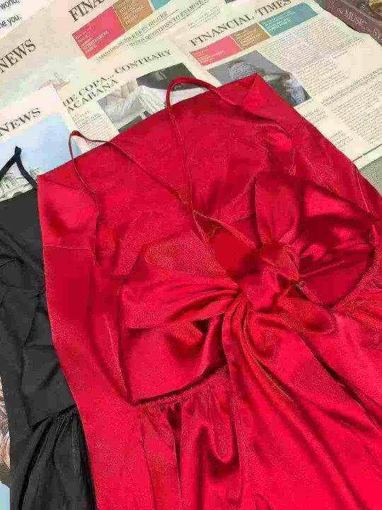 轻奢冰丝性感荡领露背后腰系蝴蝶结款,整款2色,独立...